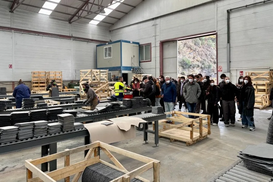 Un total de 47 alumnos, acompañados por 4 profesores da ETSAC, realizaron a semana pasada unha visita a unha nave de elaboración de pizarra e a unha canteira ao descuberto, tras ser recibidos nas dependencias do Clúster dá Pizarra de Galicia, sitas en Sobradelo, Carballeda de Valdeorras.